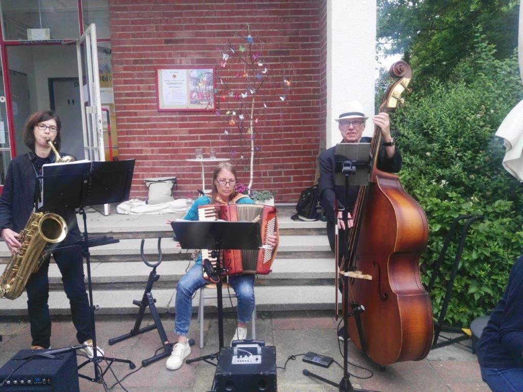 Am Nachmittag gab es großartige musikalische Unterhaltung durch das Trio Afterwork mit Saxophon, Akkordeon und Kontrabass auf dem Sommerfest.