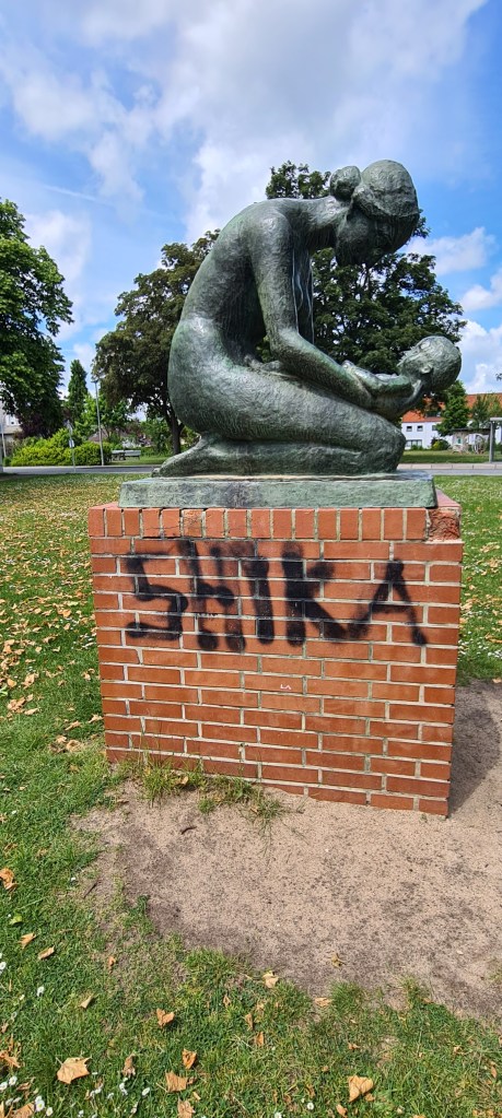 In einem Zeitungsartikel aus dem Jahr 1979 hieß es: Wer heute in Lehndorf wohnt, der kann sagen: „Ich habe es geschafft!“ Warum? Lehndorf gehört zu den bevorzugten Wohngebieten in Braunschweig. Ein Stadtteil im Grünen, dafür steht auch das Grün im Lehndorfer Wappen. Leider hat sich das Bild in den letzten Jahren stark verändert. Auch hier in Lehndorf werden Stromverteilerkästen schon wenige Tage nach Aufstellung beschmiert. Keine Bank, kein Wertstoffcontainer der nicht besprüht ist und die Bushaltestelle der Linie 422 strahlt seit kurzem in schrillem Pink. Nicht einmal vor Denkmälern wird halt gemacht. So ist auch das Denkmal der Künstlerin Gertrude Henninger aus dem Jahr 1937, was eigens für Lehndorf angefertigt wurde beschmiert. Da fragt man sich als Lehndorfer: „Ist das noch Kunst, oder kann das weg?“