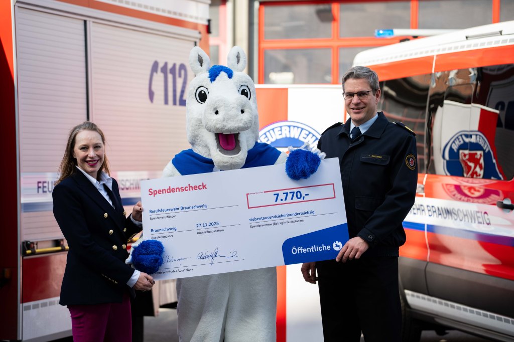 Die Öffentliche Versicherung Braunschweig hat die Feuerwehr Braunschweig mit einer Beihilfe von insgesamt 7.770 Euro unterstützt. Mit Hilfe dieses Betrages konnte nun neues Equipment für mehrere Braunschweiger Ortswehren angeschafft werden. Die Anschaffung folgender Artikel wurde mit der Förderung unterstützt: drei „mittlere Löschfahrzeuge“ und drei so genannte Zugtruppkraftwagen (für Lehndorf, Riddagshausen, Rüningen, Timmerlah und Volkmarode) sowie Hohlstrahlrohre, Wassersauger und mobile Rauchverschlüsse.